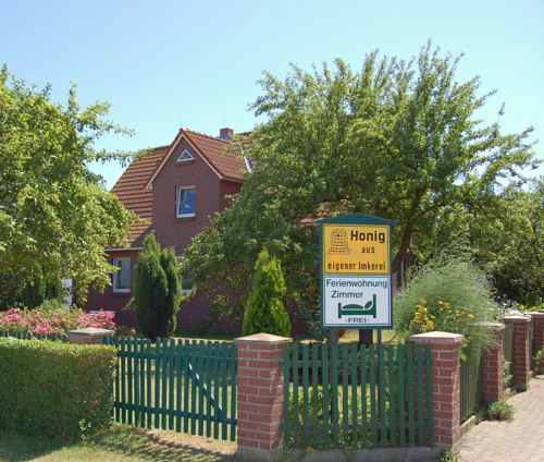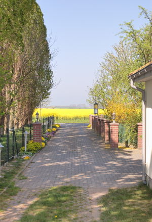 Über diese Zufahrt erreichen Sie den Immenhof. Es erwartet Sie ein großer und schön angelegter Garten, der mit Bäumen und Hecken umgeben ist. Der große Rasen, der unser Gästehaus umgibt, dient unseren